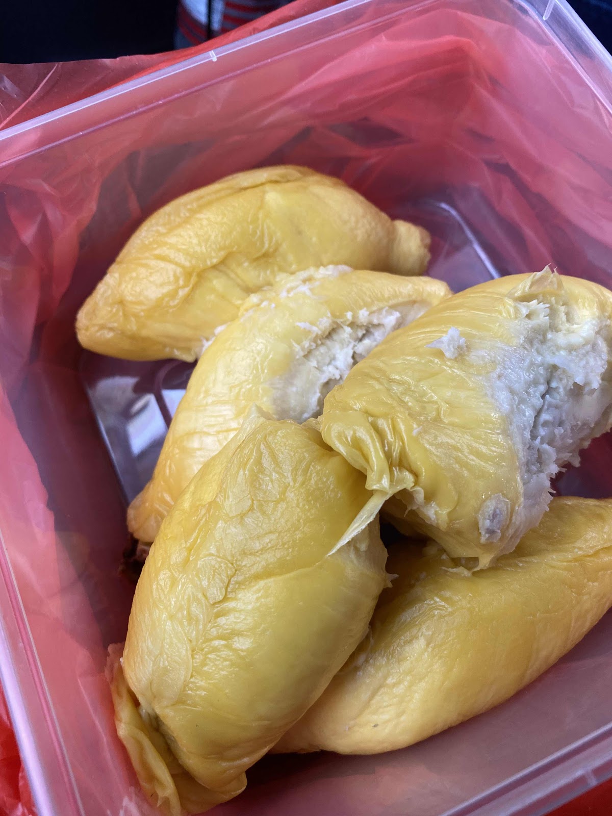 Petang tadi mengidam durian lagi makanya terus la ajak laki hakak p mencari. Tak sabar punya pasal, makan dalam kereta pun jadik laaa. Ini harga makan seulas macam harga 2 set McD oke! Tak tahu bener atau laki hakak kena chong tapi harga sebijik ni RM150+. Kononnya sekilo RM 59.. makanya menjadikan berat durian ni sebijik lebih 2 kilo la tapi dalam tu ada isi 5 ulas je! 5 ulas je oke!!